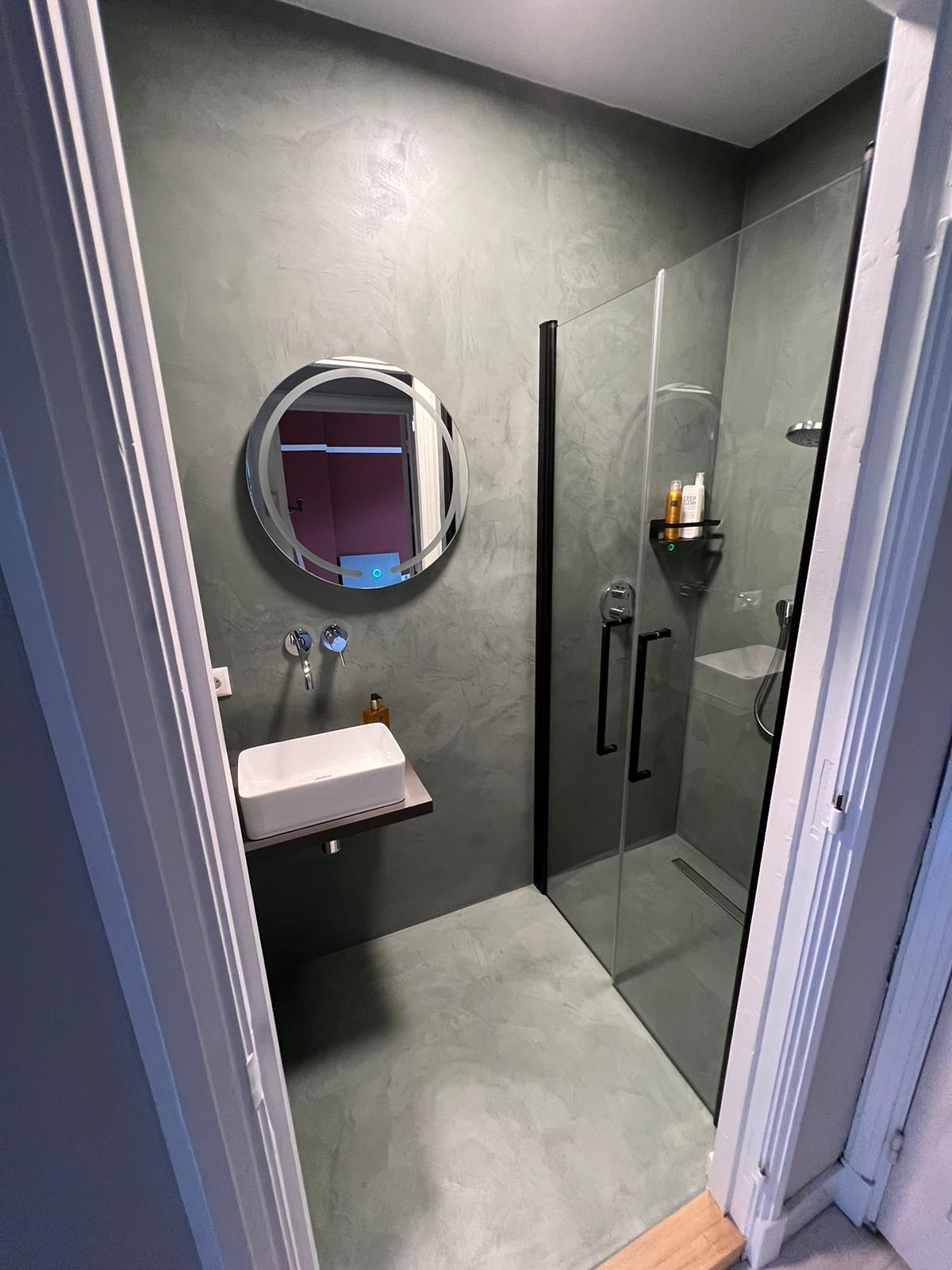 Vloer voorzien van betonciré - Wanden en plafond voorzien van glad pleisterwerk