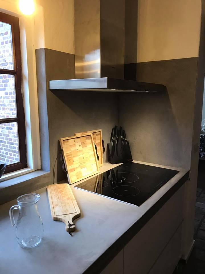 Project bekijkenAchterwand keuken voorzien van Cemher betonciré